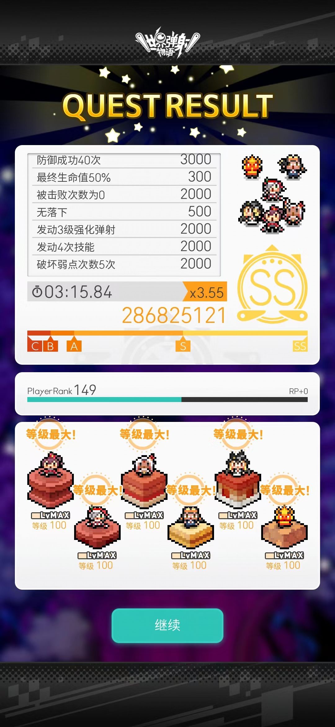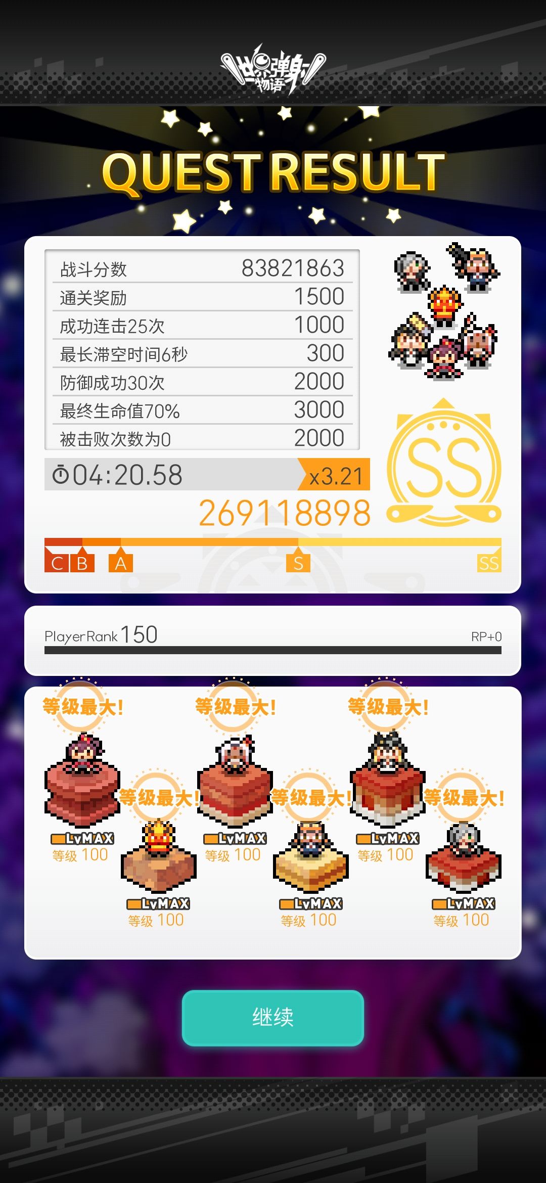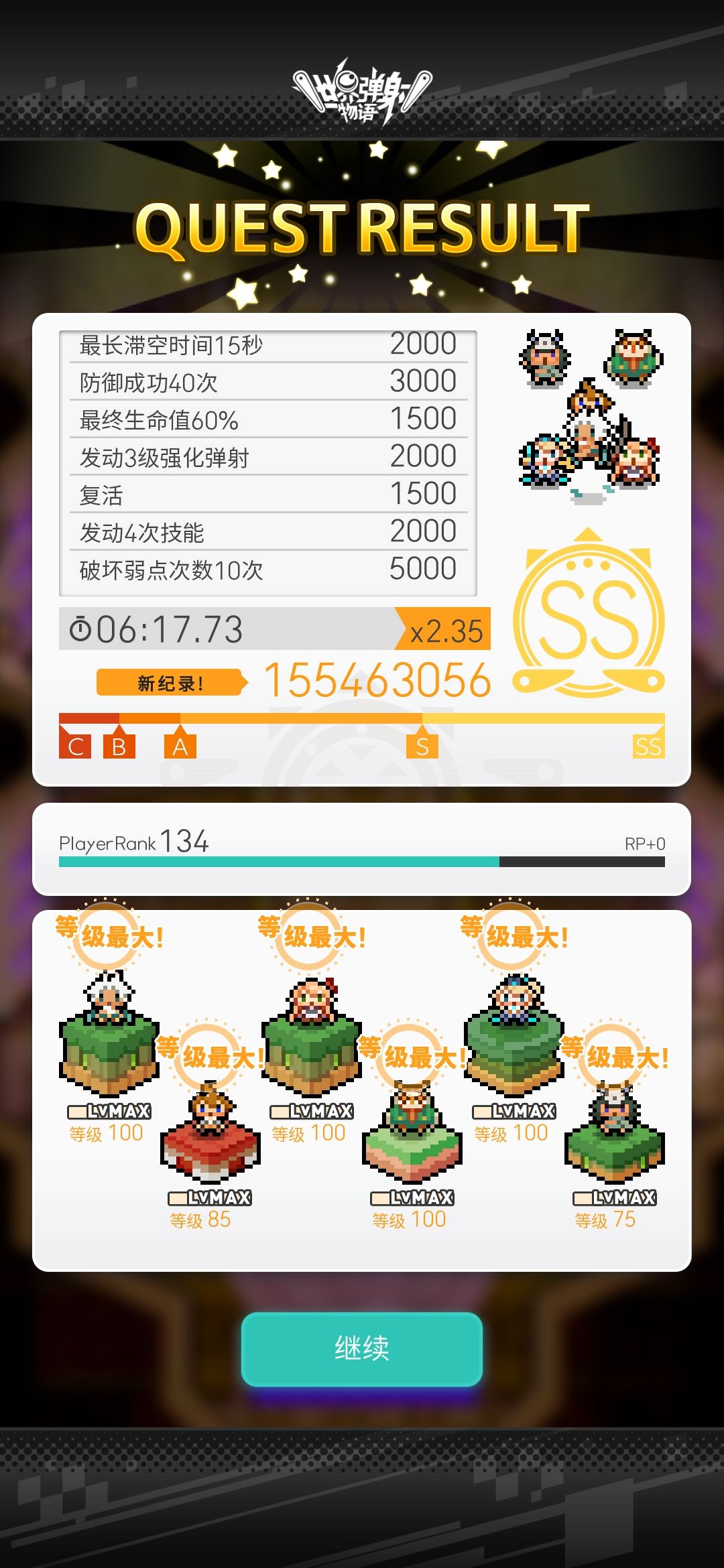 不过这个盘子六板就越多越好了,通关的时候也是全员只点了大雕像,虽然我这局抗住了两次破弱失败,不过这也到s的边缘了,六板越高的话成绩应该会越好
