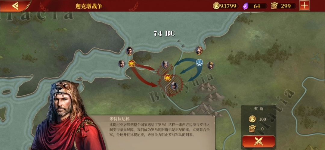 旗开得胜,米特的军团一开局就斩了一个将领。米特非常开心:看来连上天都在支持自己和罗马人决战。