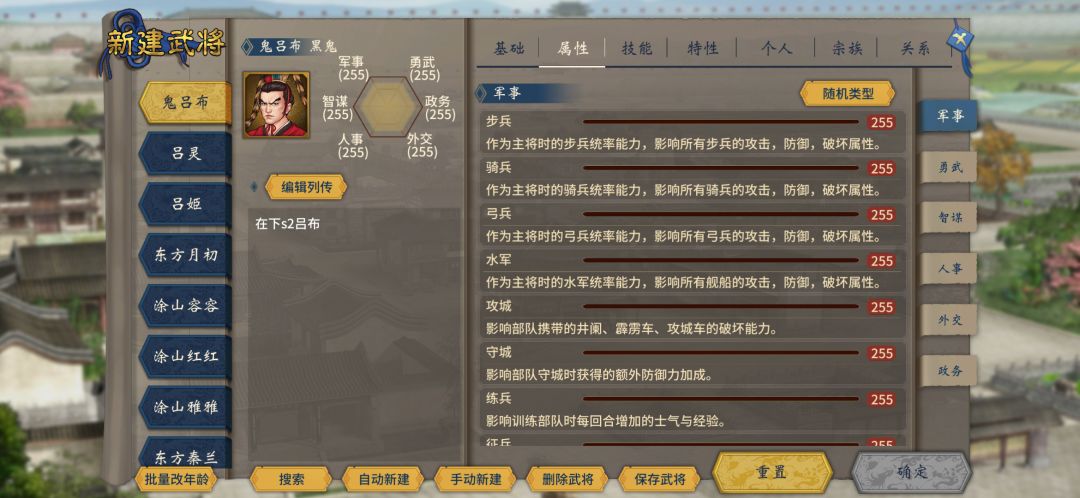 全属性最多就是培养小号,你多了你用不上,255只有战场才能发挥最好的效果,自动作战论当别论而且也就是前期发育需要手动,第一点容易打不死兵,第二容易抓俘虏换钱或者投敌, 说了这么多,改不改都一样的,100属性加6件,神装已经很无敌了,已经是顶配。当然先改的就改,属属性拉满的情况下,有4个战法是最适合的,《天下无双》美每位盒可以打两次两次,全属性情况下可以打死两个《力敌三英》全属性弓兵情况下,范围内有多少敌人杀多少队,这个本人最推荐也是以有战法最强《七星风雨雷劫》这个也是最牛逼的,如如果对面6队都是1万兵的情况下,可以打6次每回合百分之十伤害自己算《天火燎原》这这个战法就更不用说,敌方兵越多越高兴搭配《地火阵》走哪烧哪,碰到诸葛亮就不好说诸葛亮战法是东吴克星,诸葛亮技能带天气的火的克星一定要带《地火阵》后手盖掉诸葛亮的天气变成晴天,盖天气的打法想必有一些人应该很熟悉,我就不多作介绍