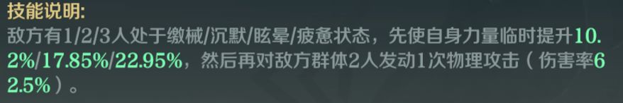 上述:普鲁士在发动主动技能后50概率加57.6的力量在黄巾起义的百分比力量加持之下打出成吨伤害。(力量上千轻轻松松)这就是叠力量的优势之处。