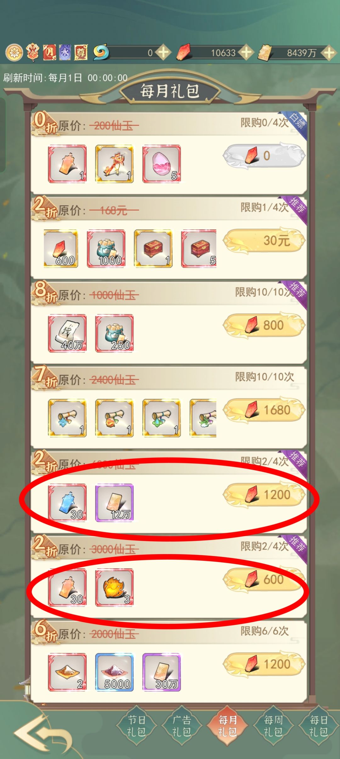 1.小老虎每月礼包法相和灵宠奇遇石虽然是灵玉购买但是折扣大通通拿下。