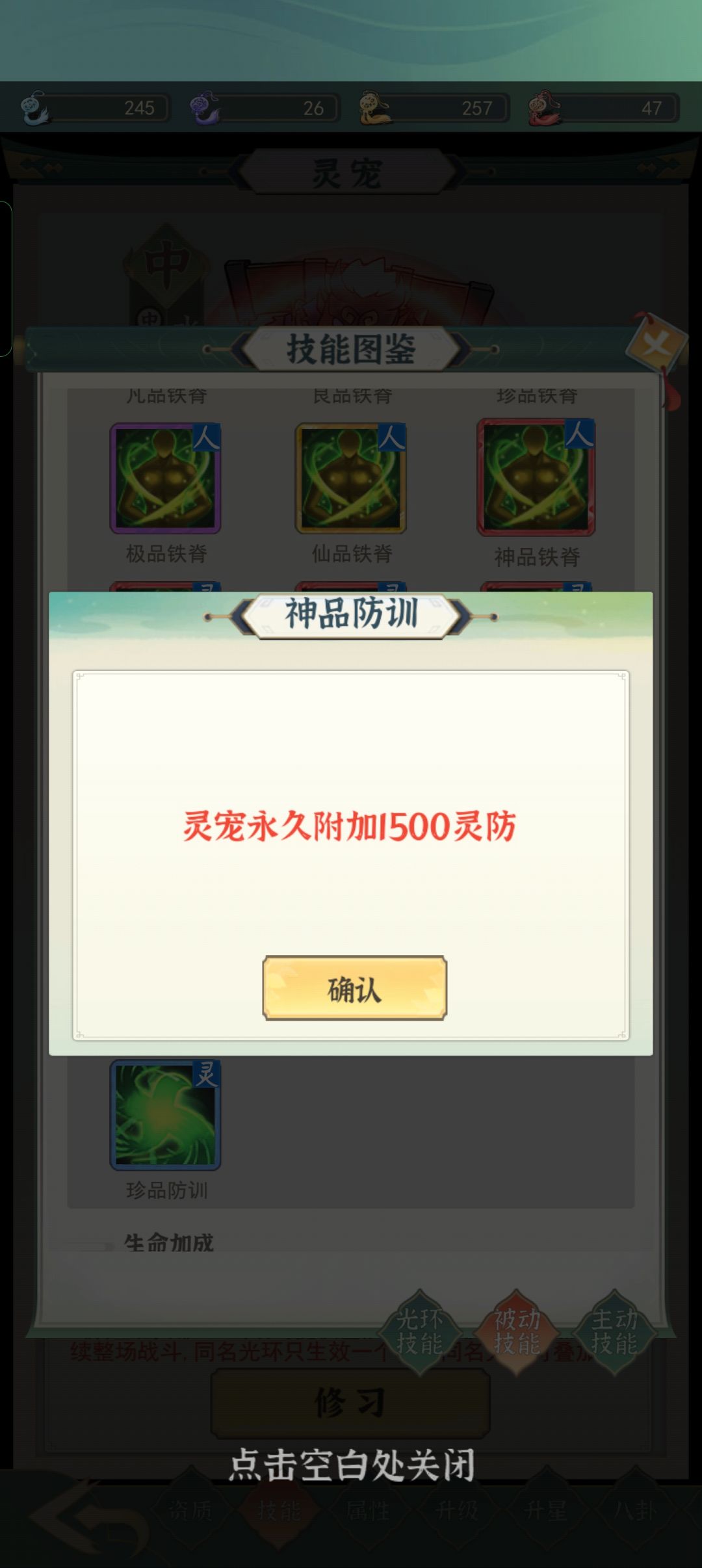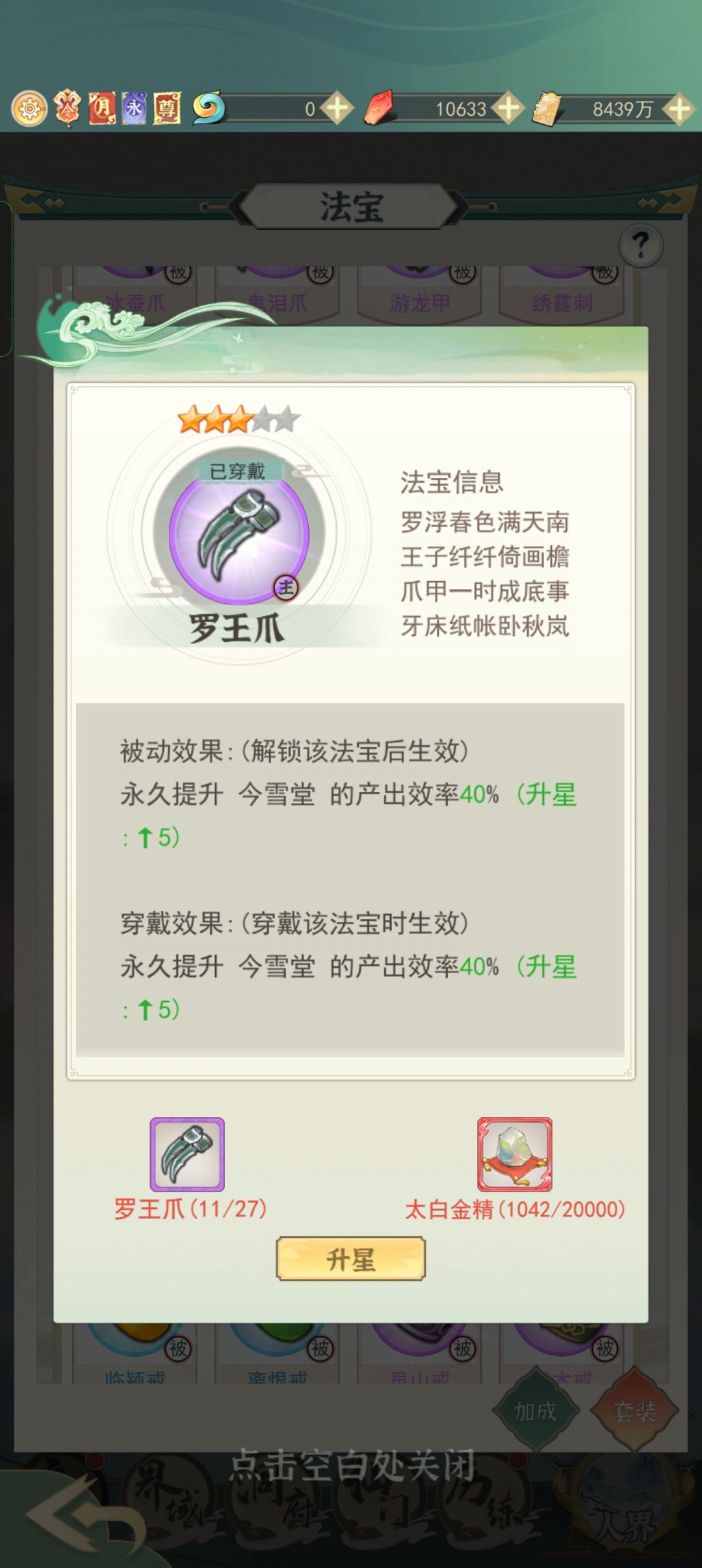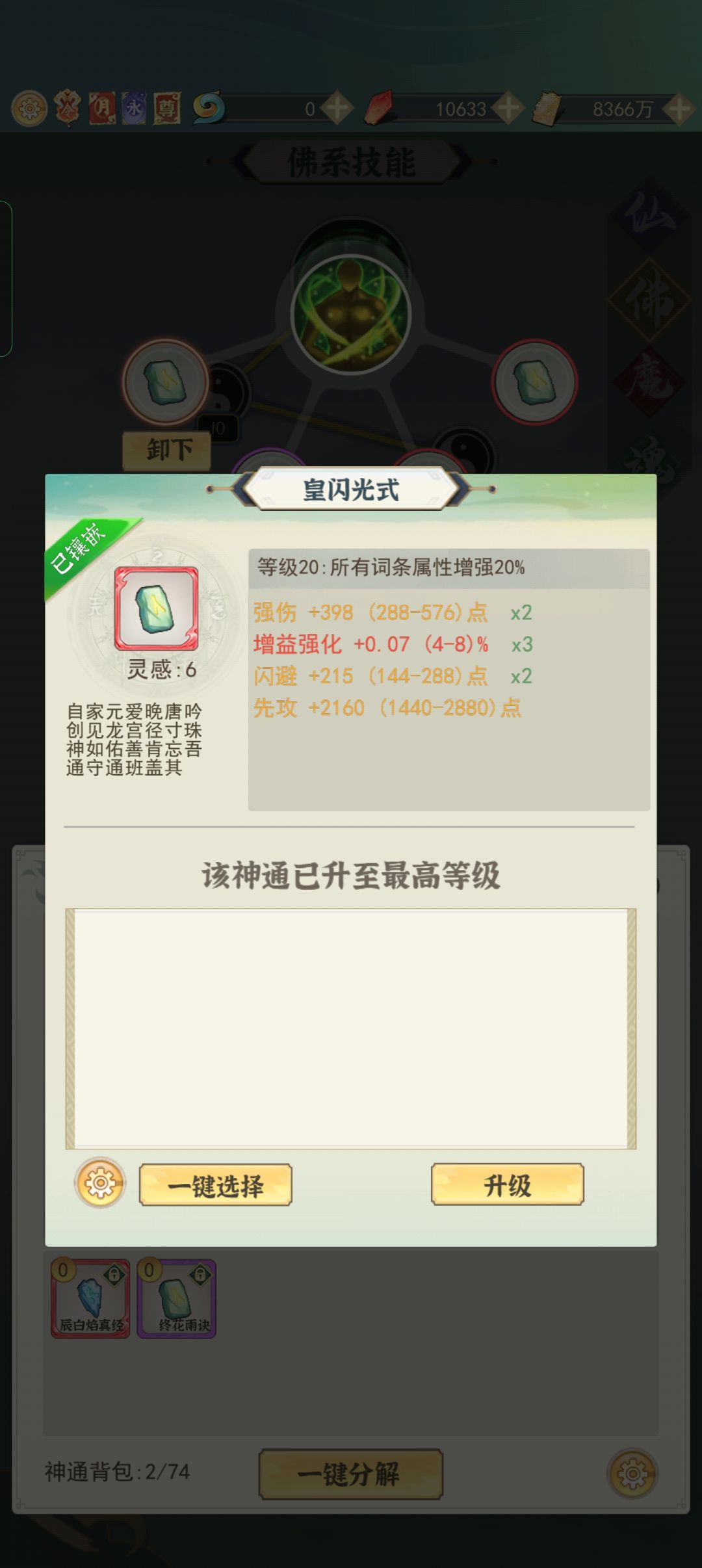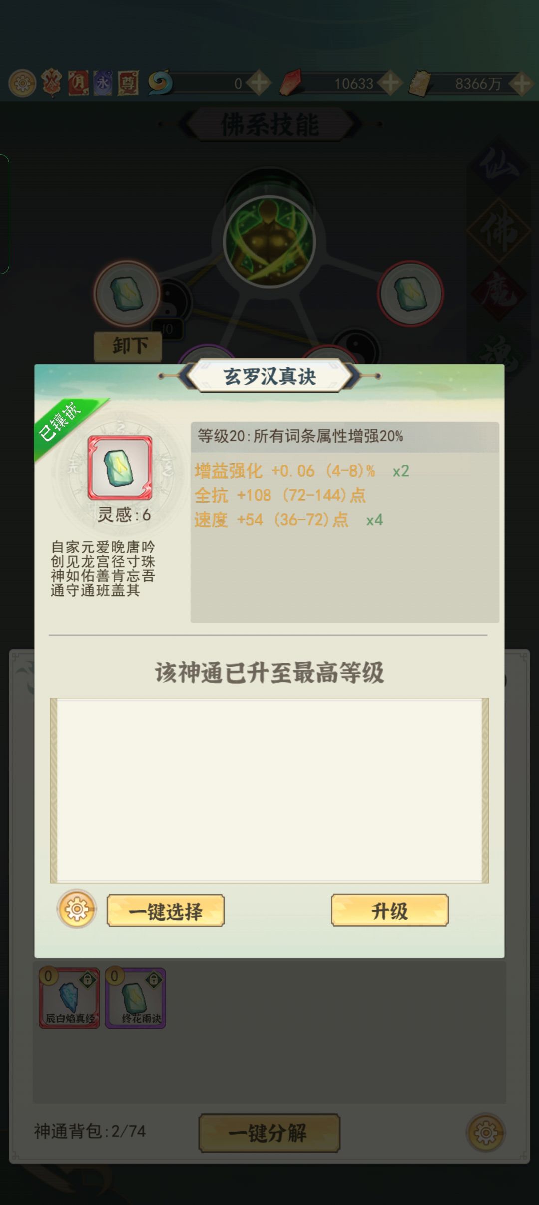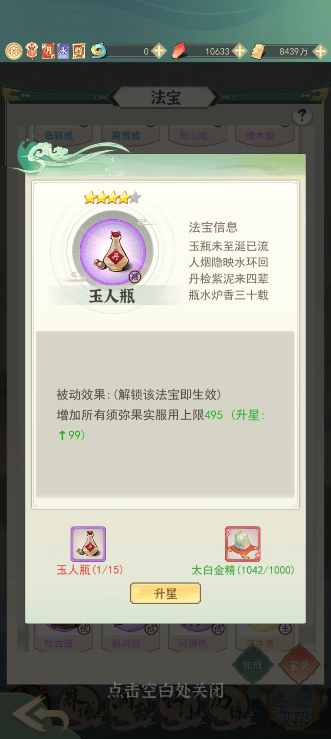 5.前期装备不需要洗练石洗脸,迭代的非常快。精炼和破镜则随意(累积的不消耗),优先提升符箓(速度),其次剑(攻击),然后是傀(生命)。