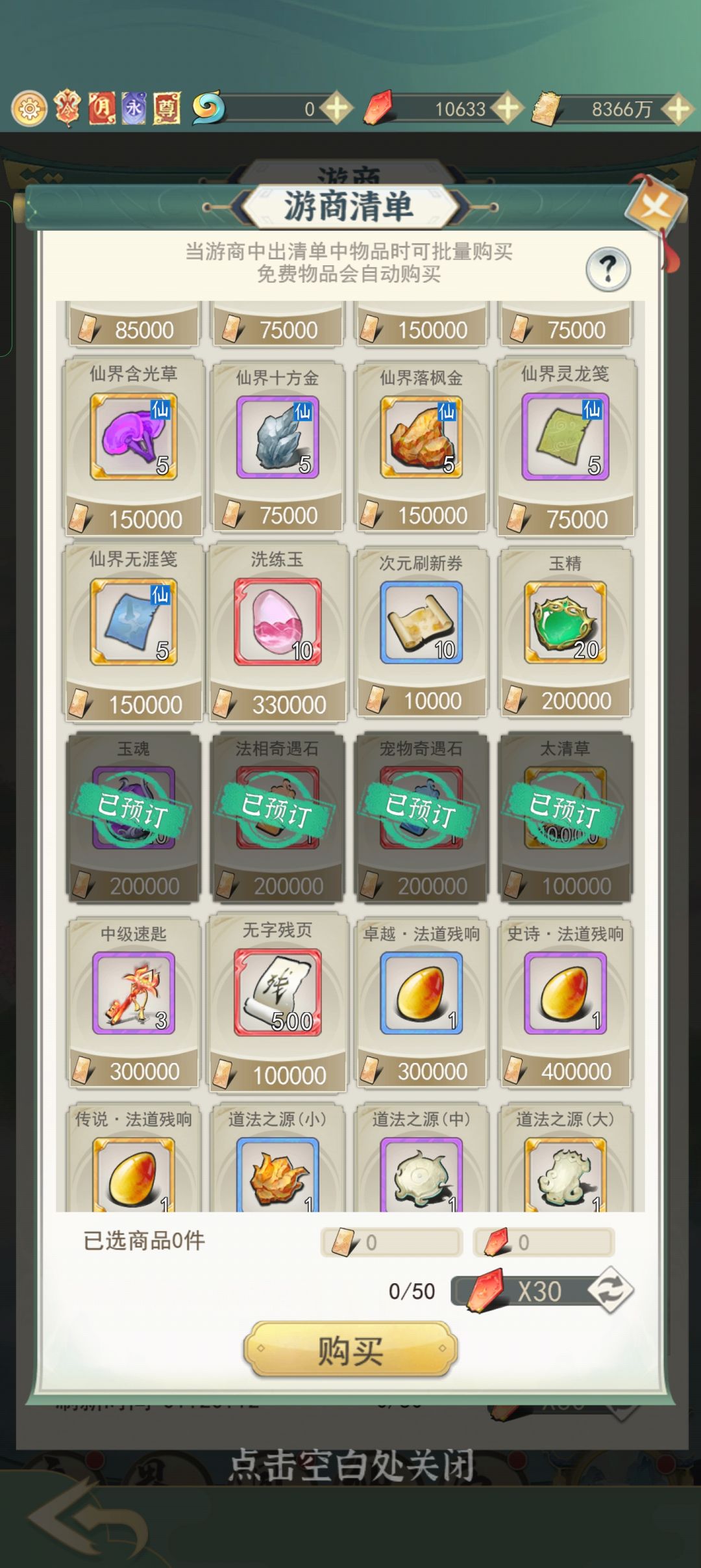 tips:法相奇遇石刚开始并没有售卖属于正常的,会随着你境界提高至化神开放购买。