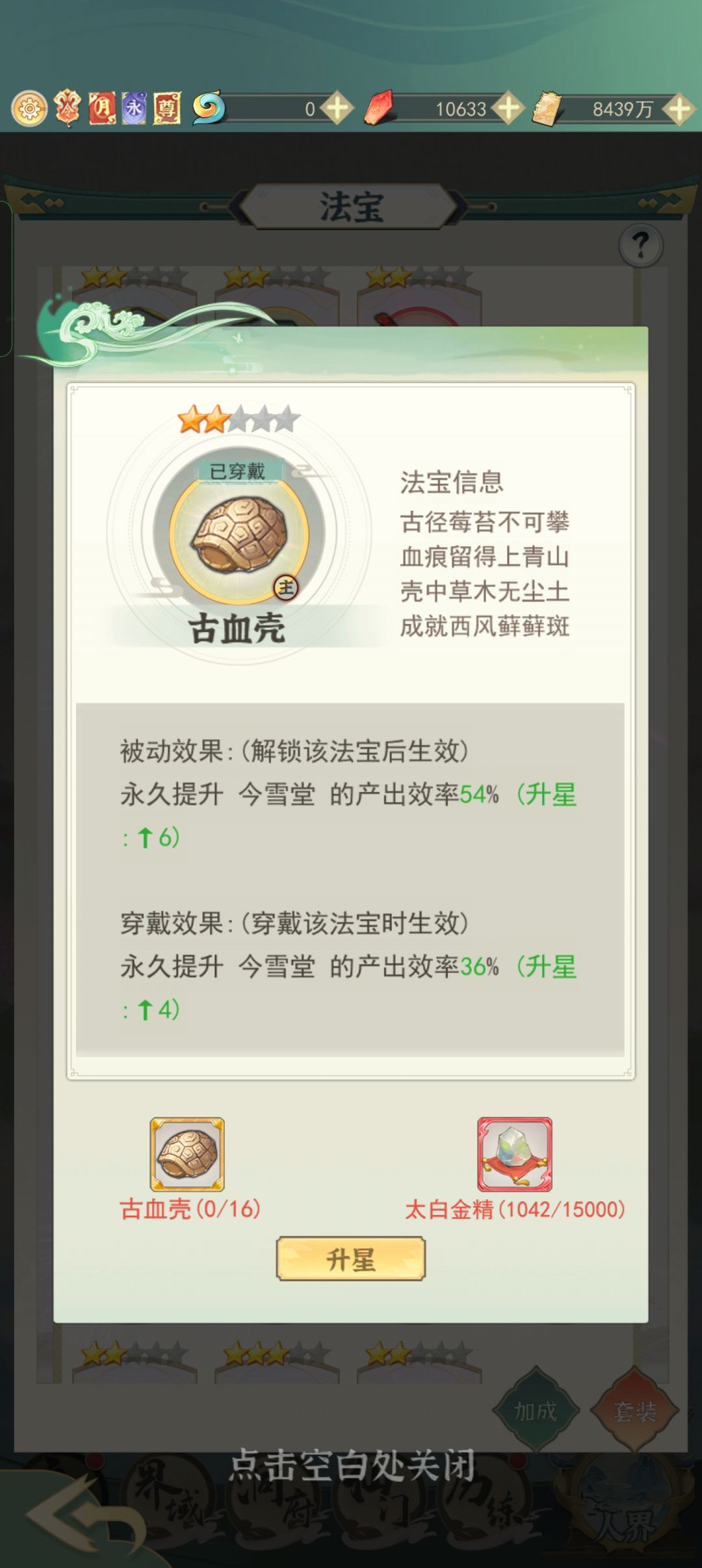 当建筑物达到等级瓶颈后,就去换太昊宝箱可以开出法宝罗王爪,擒龙宝箱可以开出血龟壳。此乃平民神器增加修为的。