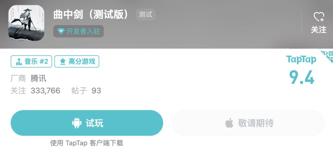 众所周知 TapTap 玩家评价近乎“苛刻”,而这款游戏在有「腾讯」前缀的“加持”下,至今依旧有斩获9.4的高分。