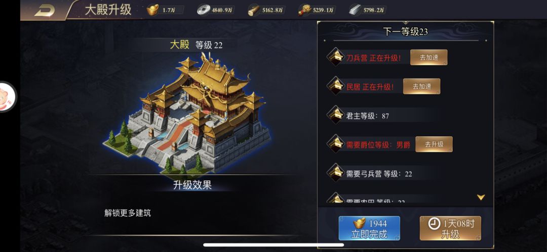 大殿升级重中之重