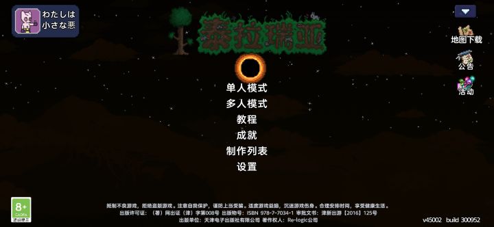今天我说一下新手如何入手泰拉瑞亚手先你可以先玩一下教学 你对游戏有了初步了解后点击单人模式—新建角色 新人推荐玩普通建好后点击点击开始游戏—创造世界 如果一个人玩可以玩小地图多人玩的话玩大或中地图种子推荐在网上找一个附魔剑好找的附魔剑是个过度的好武器你如果想在第一晚不白给最好造房子如何查看房子是否合适可以点击背包下面的一个房子然后点击你造的房子之后你就可以去挖矿了当你有了铂金或金套(说一下腐化才有铂金)就可以打boos了这里面分为主要boos和次要boos我们按流程说首先就是打史莱姆之王有很小的概率在丛林刷新或打100只蓝色史莱姆或用召唤物召唤(召唤物合成如下:皇冠加凝胶在祭坛合成在腐化之地或血腥腐化的祭坛一堆刺血腥的一堆眼珠子在地下)打完后有几率获得一个前期神器粘鞍在这之后可以去沙漠找金字塔找带沙暴瓶或飞毯就可以挑战克鲁苏之眼了用史莱姆坐骑在克鲁苏之眼上踩在你要落地的时候用一下飞毯或风暴瓶就可以无伤落地不至于摔死(克鲁苏之眼召唤:角色血量大于等于200npc大于等于3防御大于等于12晚上有几率出现打不过晚上会一直有几率出现或用召唤物召唤用7个晶状体在祭坛合成)打完后,就可以获得血腥或腐化矿,将它们熔炼成锭之后,合成腐化或血腥的装备,这里说一下,没有打克鲁苏之脑或世界吞噬者之前无法合成装备,只能合成武器,之后你在野外探索的时候,如果捡到了炸弹,就会有一个非常重要的NPC来到,就是爆破专家,你可以在他那里买到炸弹,之后拿着炸弹去腐化或血腥之地炸心脏,或者是暗影珠,这里说一下,每炸一个暗影珠或心脏就会掉武器,炸掉三个就会召唤boss,这两个boss都非常的简单,克鲁苏之脑吃击退,世界吞噬者推荐拿星怒和史莱姆坐骑打星怒在空岛寻找,如何寻找空岛在网上有教程,在你打完克鲁苏之脑或世界吞噬者后,会获得鳞片或组织,有了这些就可以合成血腥套或腐化套,最主要的是合成腐化或血腥稿子,之后你就可以去地狱挖狱岩了,最好制造一下黑曜石铁皮药水,黑曜石铁皮药水制作如下,火焰花在地狱获得,水瓶,黑曜石,有了这些之后,可以在瓶子旁边合成,在你有了狱岩套之后,就可以挑战肉山了,打肉山的时候推荐在地狱塔一条非常长的跑道,在上面铺上篝火,最好在跑道上挖,几个一格宽的洞,在地狱寻找一个叼着,巫娃娃的小怪,确认你的向导存活后,将巫毒娃娃扔到岩浆,向导就会被杀死,然后召唤肉山(其实这里少说了一个boss那就是蜂王蜂王在雨林地下寻找但是普通模式基本不怎么需要蜂蜜,手雷就能打过肉山)在打肉山时,推荐的武器是永夜刃,永夜刃的合成如下草剑,腐化或猩红剑,村正,狱岩剑(这里说一下村正如何获得在晚上时,在地牢门口会有一个老人跟他对话,会召唤骷髅王打败骷髅王就可以去地牢,在地牢打怪有几率爆出金钥匙用金钥匙打开地牢的金箱子有几率刷出村正)不推荐和肉山正面刚近战,在打败肉山之后,系统会提示,光明与黑暗之魂已被释放,打完肉山会给你任意勋章和一把神圣锤,用神圣锤再腐化或血腥敲三个祭坛,敲完祭坛会赐予你三种矿物,当然,如果你运气好的话,刷出钛金,就比较简单了,因为钛金可以合成冰套,精金只是让你变得扛揍,这些矿物的挖掘都是需要前面矿物的稿子或钻头,同时你也会发现,因为少了肉山这个守护神,这个世界发生了非常大的变化,多了非常多的怪物,核心的地形神圣,它并没有他的名字那么好,同样的,在你打完肉山之后,血腥或腐化,和神圣就会蔓延,其实不用管,在你打败任意新三王之后,会来一个NPC叫做蒸汽朋克,他会卖一把环境改造枪和环境改造溶液,用环境改造枪喷就可以将地形改变成任意地形,打新三王之前最好有,精金或钛金套或冰套,在打新三王之前,可以刷一下海盗入侵给的东西,还不错,大师模式还会掉一个会飞的坐骑,接下来就是新三王的召唤物如何获得?第一个双子魔眼打怪物有几率获得,或用铁和神圣之魂,黑暗之魂合成(这里补充一下,是在秘银或巴金砧合成再来说一下如何烧制精金和钛金在之前你在地狱找到了地狱的熔炉,你只需要拿精金或钛金的原矿就可以在巴金或秘银砧那里合成精金熔炉或者是钛金熔炉)同样,机械,骷髅王和毁灭者制作材料跟双子魔眼差不多,新手推荐先打毁灭者,你只需要在天上的空岛往下打就行,因为普通模式的毁灭者不会飞在你有了神圣套之后再挑战机械骷髅王,和双子魔眼,在挑战完他们之后,你会获得力量之魂,神域之魂和恐惧之魂,用这三种灵魂可以合成神圣镐,在打完新三王之后,会提示你从零开始变得焦躁不安,你就可以来到雨林,在那里会刷新一种新的矿物叶绿,也会刷新一种植物生命果,使用生命果可以永久增加五点血量上限,之后就是挖叶绿,但是挖到叶绿之后最好不要合成叶绿套,因为叶绿套十分的拉胯,加上后面有许多比叶绿套厉害的装备,需要叶绿合成,推荐合成王八套,王八套需要王八壳和叶绿合成,王八壳需要打王八获得,在你有了王八套了我们就先说到这