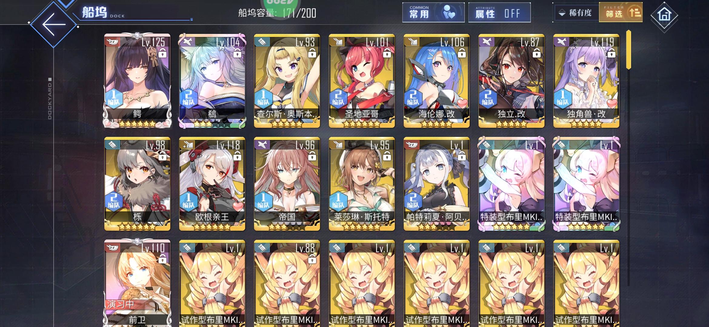 初始号入坑的萌新,求大佬帮忙配队,之前一直是一队打的,准备推11图了,想分成两队,比较迷茫,先提前感谢(❁´ω`❁)(紫色就不截图了,看强度榜上好像不多)