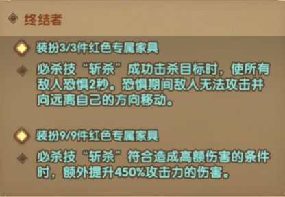 家具值得一做,斩杀的群体恐惧很强,加伤害也不错。是为数不多的可以考虑心愿单一直留到9件的英雄。