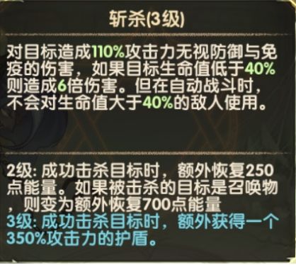 |当能量满后就会进行判定,该技能无CD,会依次把所有满足斩杀血量的敌人拉到身边。但是大招的优先级更高,可用大招时会直接使用大招。