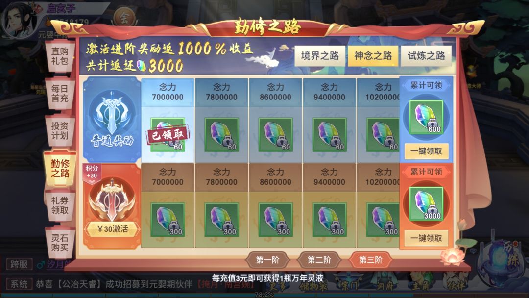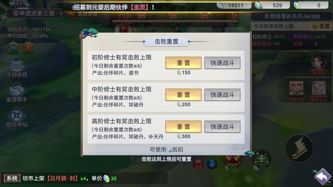 更何况,每周必掉的200补天丹是一定要刷满的。