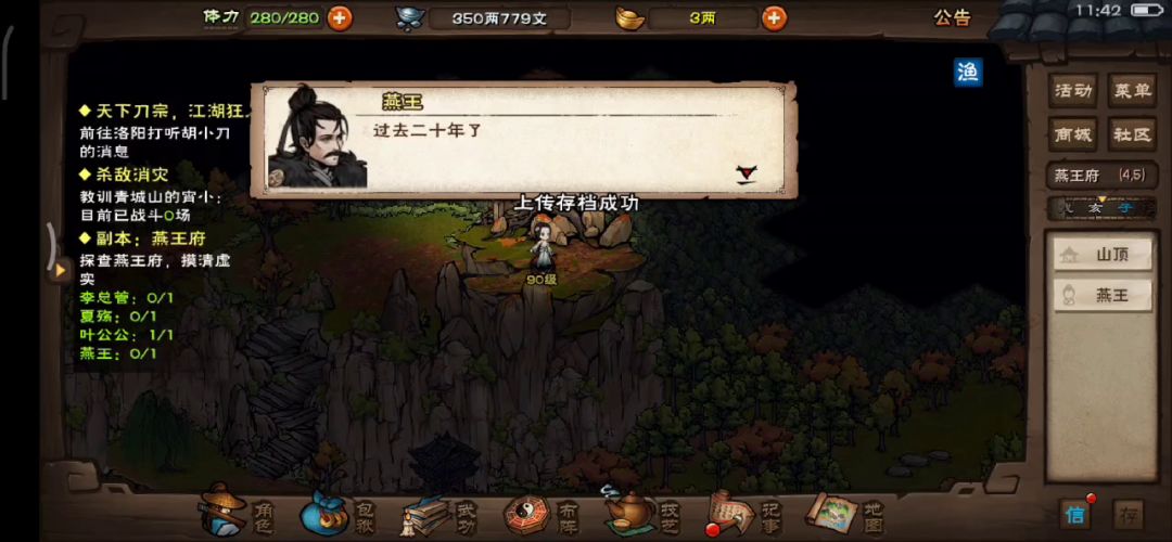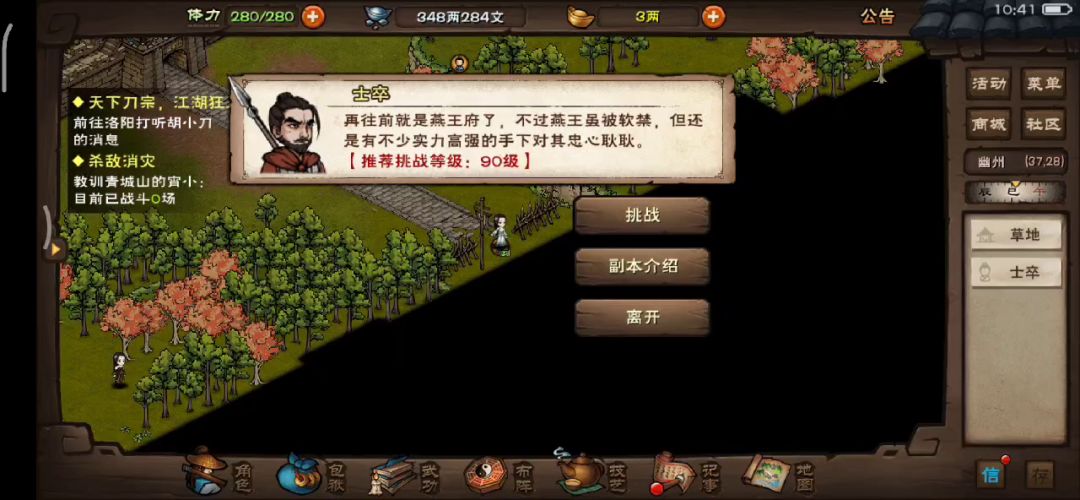 第三,招架反伤,燕王的招反伤害大约在2000左右,不算很高,但非常恶心,盾兵帮他挡伤害时也算他招架,能触发招反,招反也会破南屏钟,可能原本状态还好的随从被他招反了血量就会低不少,而且练度低并且血量不健康的时候容易被他丝血一穿三(我当时练度低的时候就被他这么翻盘过,三次招反,弄死我三个,就剩一个主t)