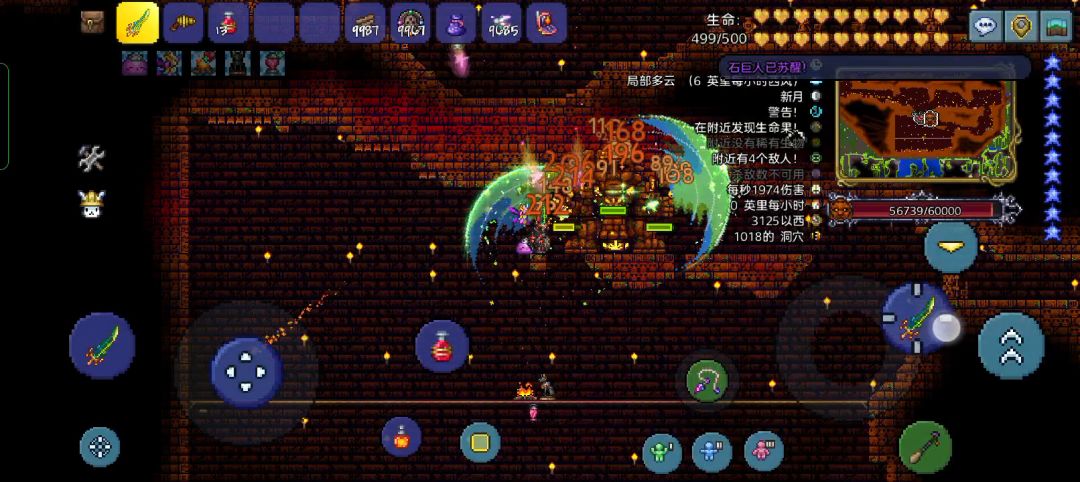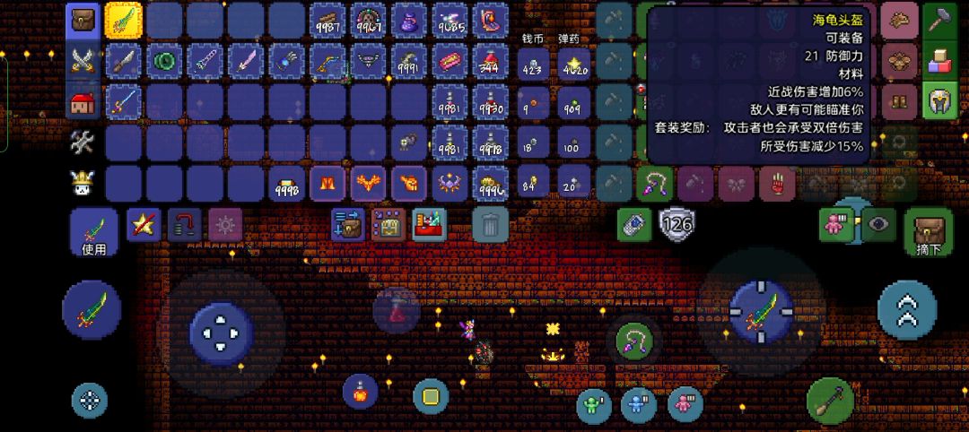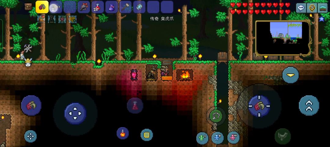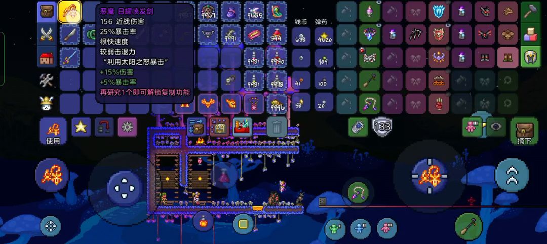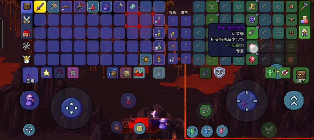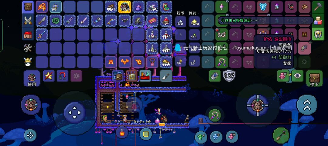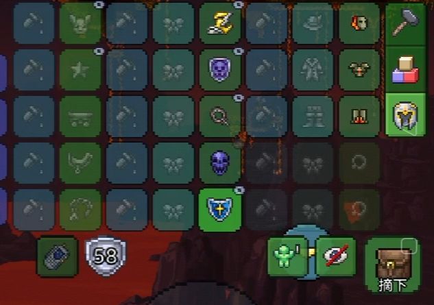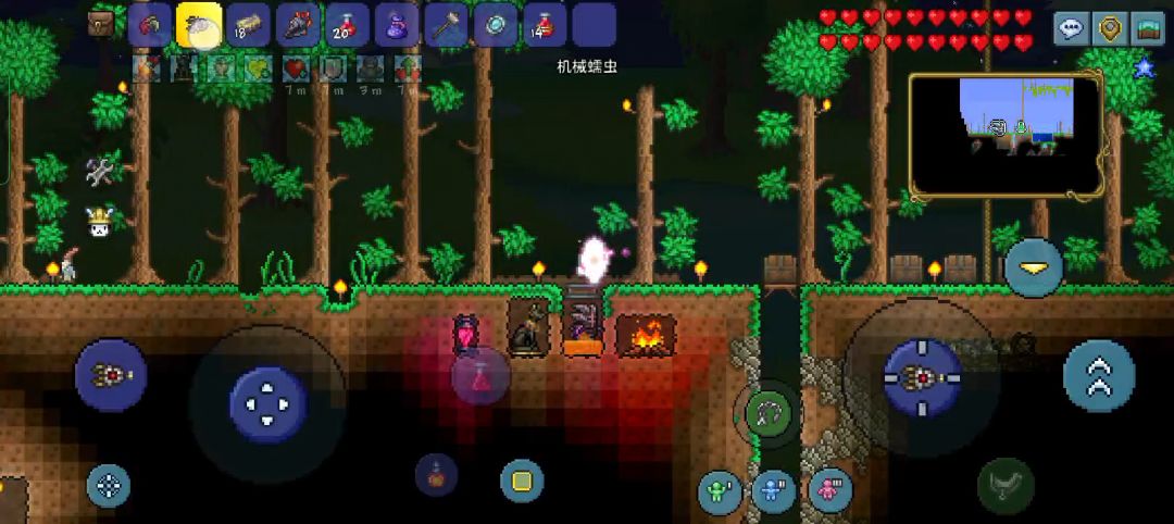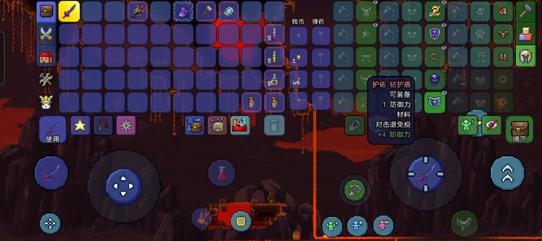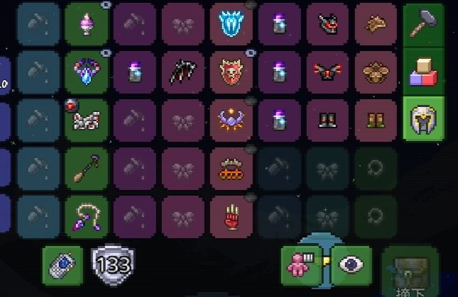 注意:由于饰品槽不够因此无法带上免疫击退的饰品,站撸boss在保证能攻击到的情况下最好在密闭空间内,当然也可以将月亮石换成十字章护盾(嫌麻烦可用黑曜石护盾)。