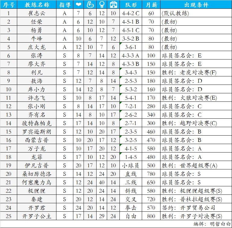 作为一款足球游戏,教练本是游戏的一大重要要素。