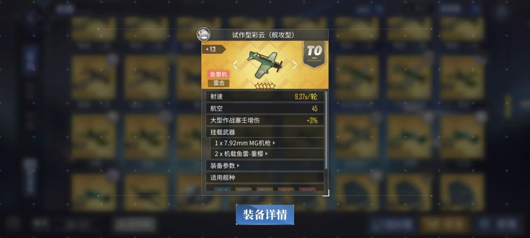 毕业发展:战斗机换BG-109G(火箭弹,4期科研得)或者飞碟(装备研发得),鱼雷换彩云(4期科研得,做四期科研附带的)或者ju87(装备研发得,毕业集束雷),平行雷用飞龙(装备研发得,一架需要打大世界三个月,后后期推荐),赶紧做4期科研啊,需要的这里都有