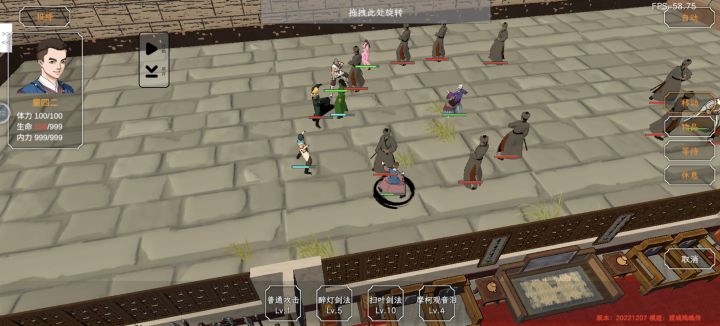 图片是第二回合刚开始的站位,队伍里的顺序如下:2/3和尚/绿医,6胖徒弟,457是剩下三个。打BOSS之前去无名洞拿20个毒蛇镖,四个能用暗器的都要把暗器刷到100。加轻功的装备给四二,绿帽子和袈裟给和尚还有六一。