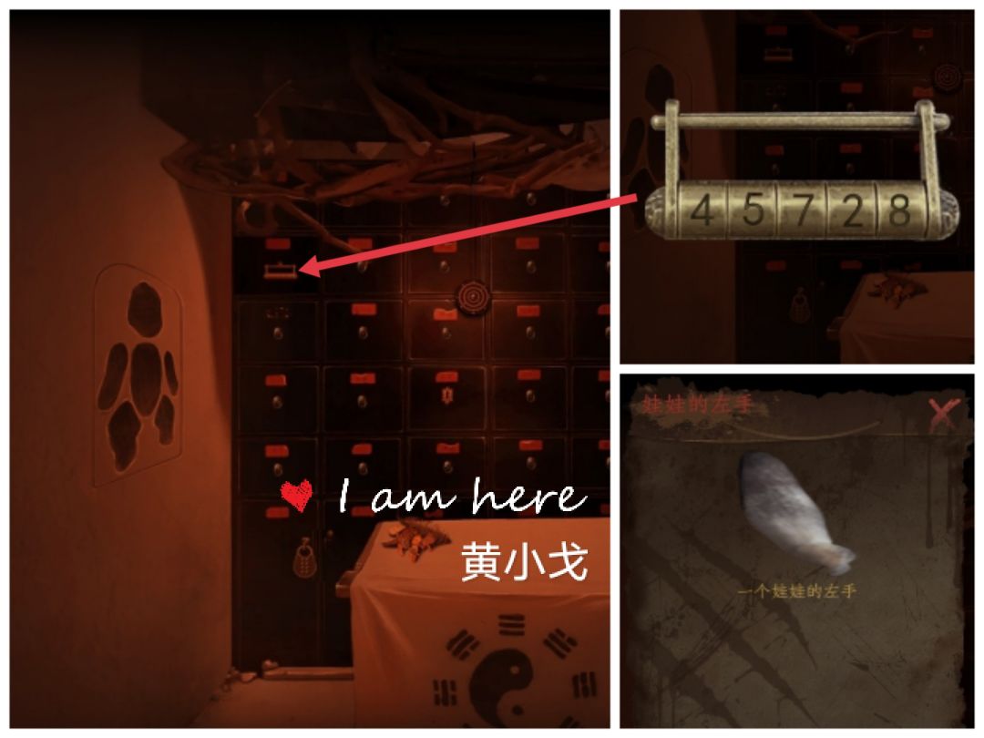 4.点击左上角的柜子,输入密码:45728,获得【娃娃的左手】