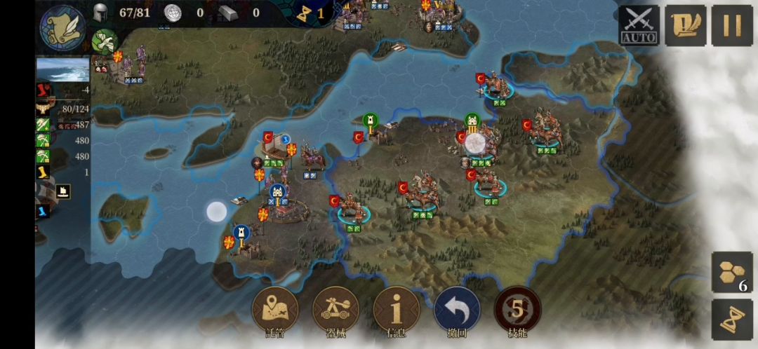 每回合出斥候骑兵,前往各处空城防的黄圈城堡待命,等到当前回合可以一次性拿下红圈城时,所有斥候于当前回合踩下所有黄圈城堡