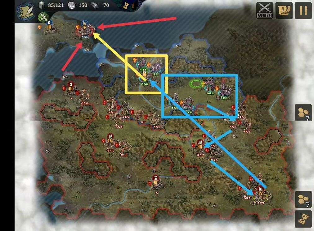 ps2:中央三级城切勿被攻破,放个高减伤的将领下去,若被攻破会拖延我军进攻速度
