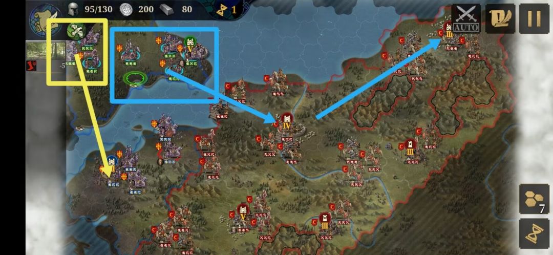 ②占领所有黄圈城堡后,解锁前往红圈城的道路