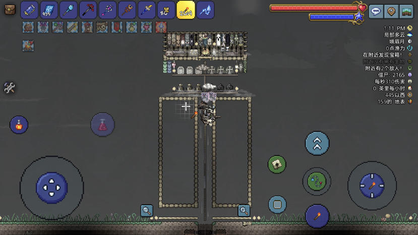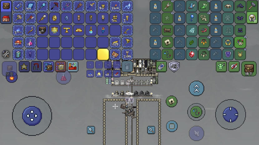 在原来的基础上加了格挡和通道,底下半砖推送平台,中间挖了长隧道但我忘记了带着金币的怪不论跑多远都不会消失…这个有点失败…