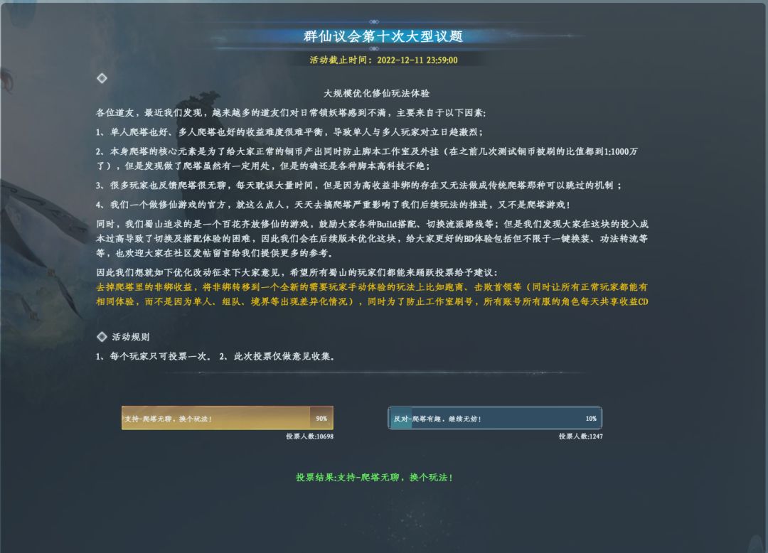 我们正连夜加班加点赶制新玩法,大家敬请期待!有好的点子和意见,都可以到下载Fanbook(PC、手机版本都有),进入我们的蜀山社区,反馈频道,发帖提出来!