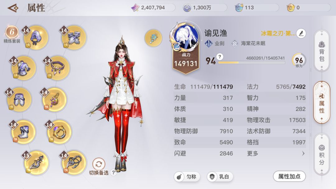 业刹要堆的属性:致命(暴击率)、物理攻击、穿透、命中(业刹堆致命对于副本打伤害收益是很可观的)