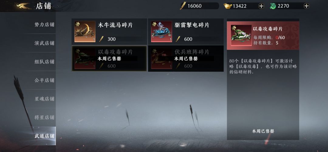 建议一:换策略碎片以毒攻毒20片伏兵班阵20片