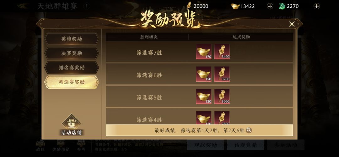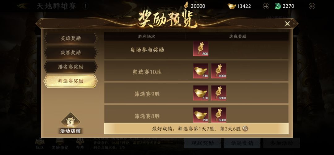 首先我们要知道经过2天筛选赛赛除了比较优秀及少数幸运的64位玩家晋级,其余玩家可谓就是获得了参与奖,所以获得的天地令数量有限。