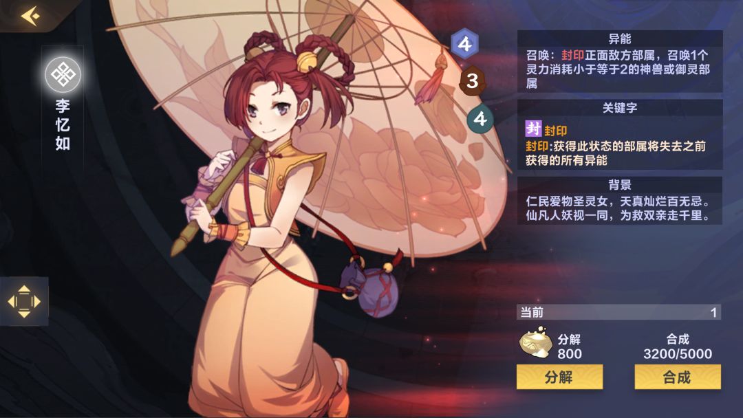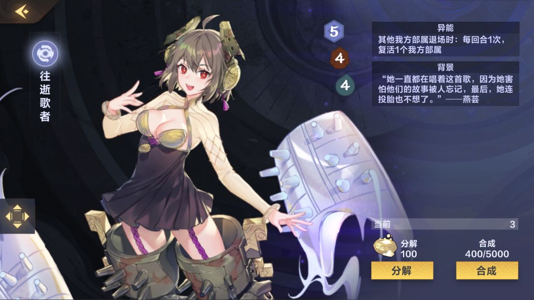 (根据上限还是复活投入0-3)上限阴可以带,前期4费稳定解一卡,建议触发充能使用(6分)
