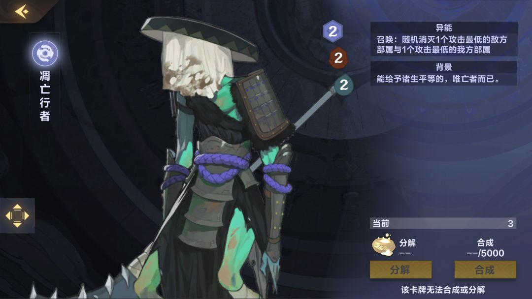 (0-1张)被压场时候用不上,压别人时用不到,目前比较尴尬的一张卡,合成优先级不高(5分)