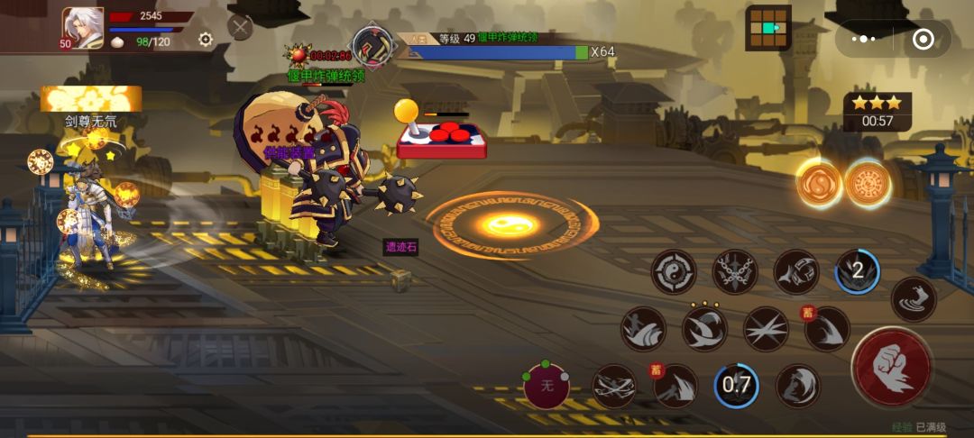2.第二图也简单,但处理不好也会死,因为这两个自杀式爆炸是全屏幕的,要注意两个怪血量地图上出现光圈就是要跑过去自杀的,第一要么快速秒杀阻止,打这个最好留住无敌技能(如裂波斩)还有控制技能,这样可以控住他。二就是快速激发装置护盾保护也是可以免疫的。(留意BOSS的风刀晕你没商量)
