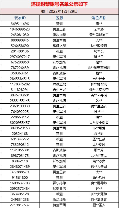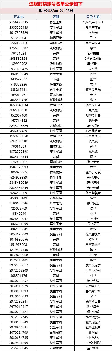 名单覆盖12月28日-12月29日期间的所有封禁账号