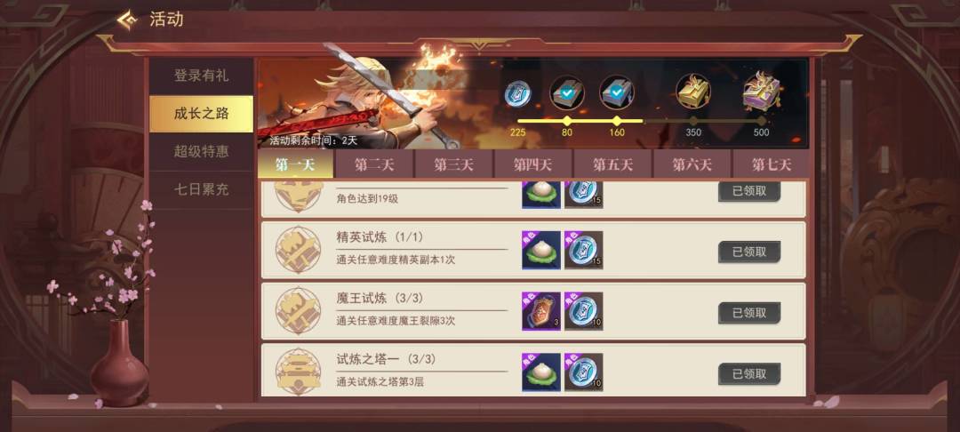 成长之路前期是主要免费得到体力的地方 注意 一定要完成