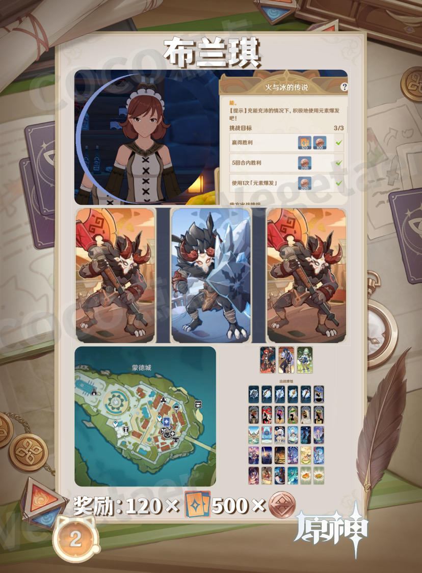 图中包含了NPC位置、出战卡牌、应对卡牌、奖励等信息。