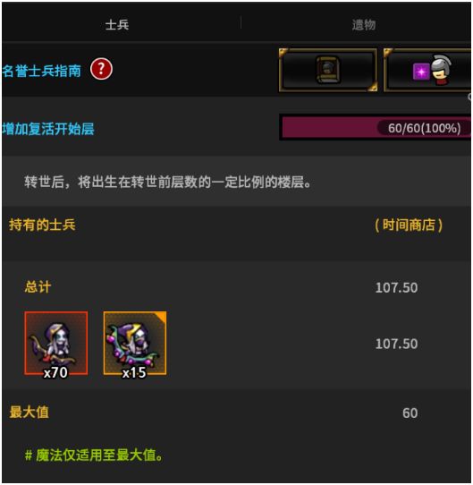 (假如在20000层复活,复活后是从20000层的百分之60,也就是12000层的地方开始下一回合的跑图,前期节省时间的利器.)