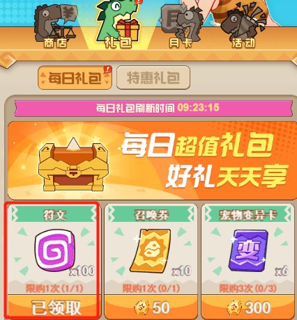 商城礼包奖励:每天商城签到一次就可以免费白嫖到100的符文,每天只限一次哦!签到十天就1000符文,积少成多呢!所以小伙伴们赶紧打开游戏签到起来吧!