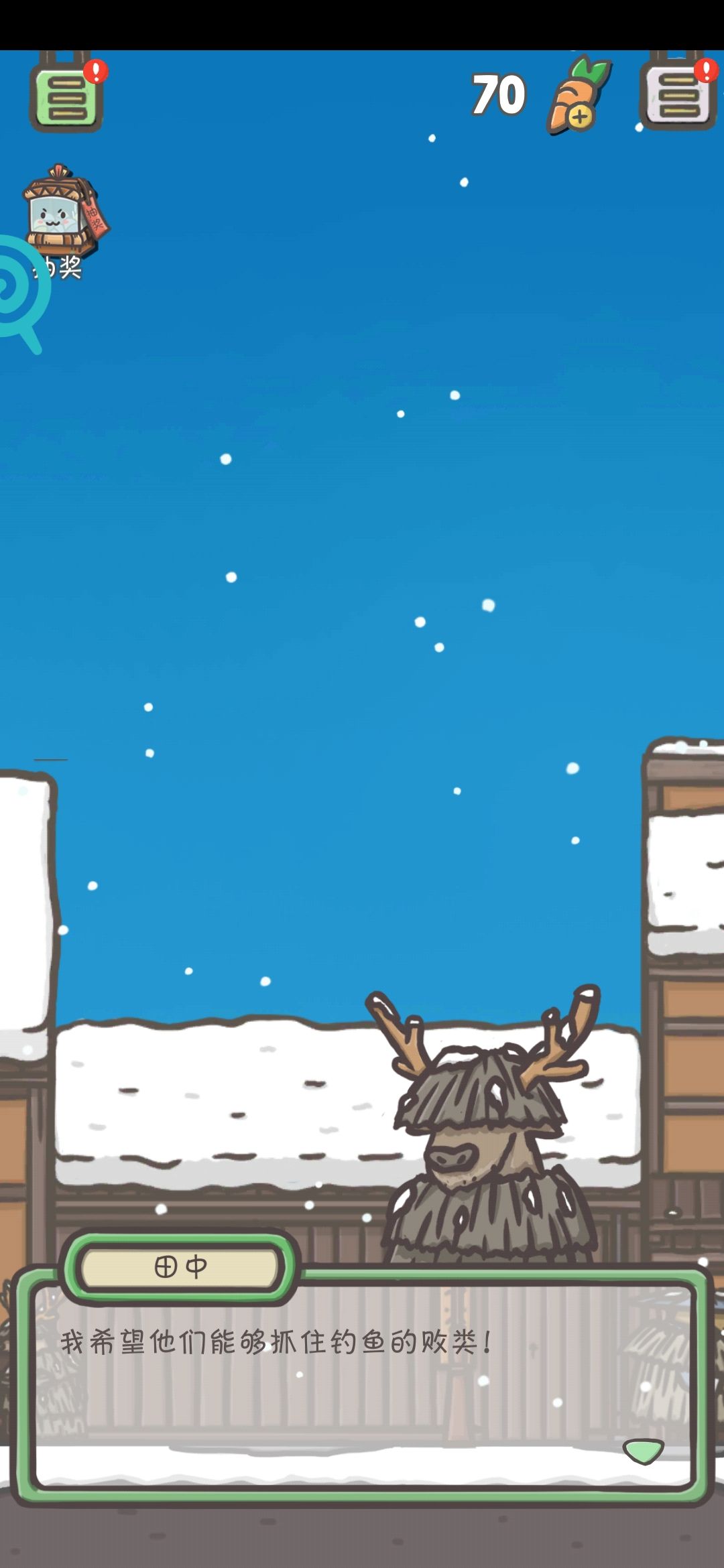 出发前是攒了点儿胡萝卜,购买衣服跟雪橇,但是冰镐子还差点胡萝卜,可怜巴巴地等到老家寄来胡萝卜,刚刚凑够,就去钓鱼了。