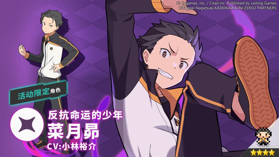 突然穿越到露格尼卡王国的少年。拥有一旦死亡就能回到特定时间点的能力“死亡回归”,并用能力帮助爱蜜莉雅等人闯过了种种危机。虽然胆小又谨慎,但到了紧要关头也会展现出勇气和胆识。