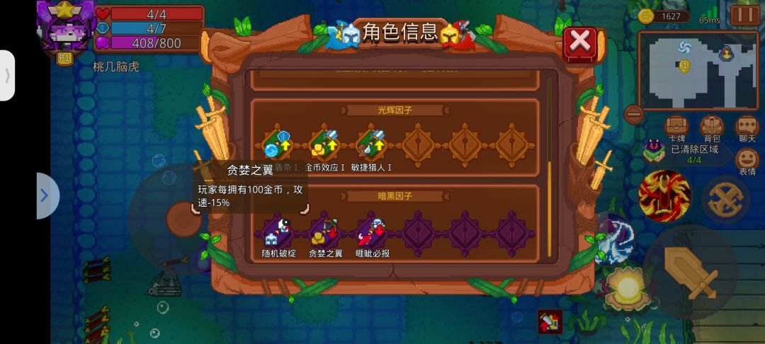 图四卡负攻速的负面因子,金币越多攻速越慢,低于0就会变为攻速10。