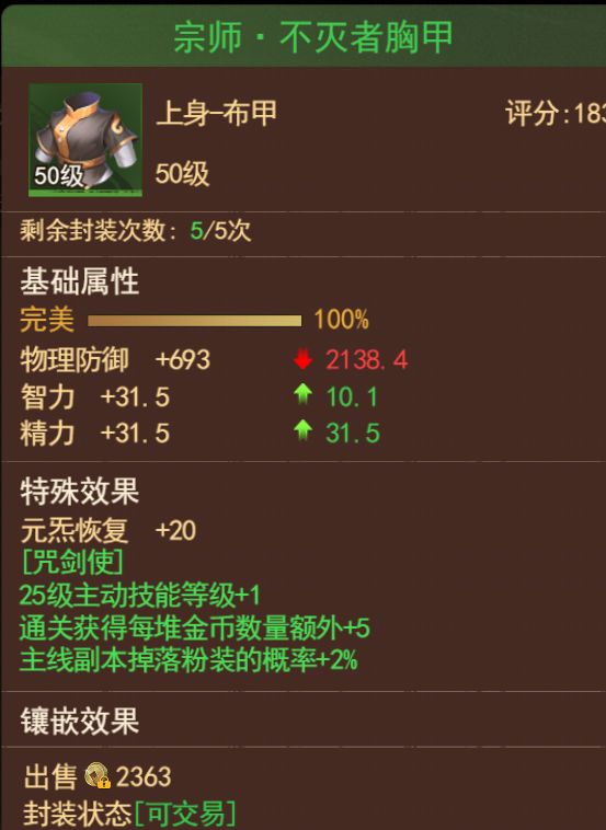 新玩家如果有财力建议入手一套,增加经验,前期提速玩家成长,本身可以大幅度提升四维,万金油,保质期很长。