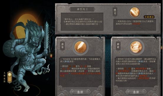 我们每次选择朝拜佛像时,都会有两个同职业不同流派的宗派天赋选择。为了方便理解大家通常简称其为(职业x)+(宗派天赋1or2)。神饮明王主打火与酒,而神饮醉歌流派便可以简称为“火2”。