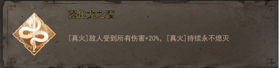 双龙酒则可以直接强化燃烧,是不可多得也是必不可少的伤害增幅技能;