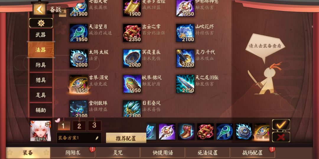说完了技能,大概有个了解,说一下阴阳术的搭配,我分为了两套,如下面图片