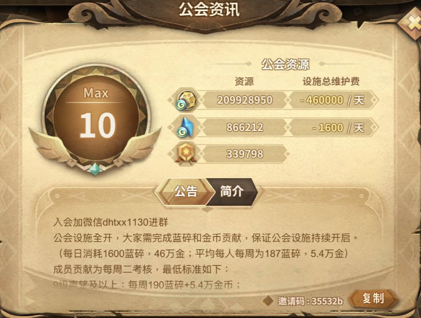 满级公会 设施全开 资源还够吃一年半(放在这里会有人看到吗)