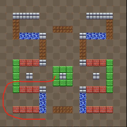 经过前三关的分析,大家对游戏的方式也应该有所了解了,今天就向大家介绍第4关的玩法。第4关的地图与前面几关有所不同,前面几关大多是封闭的对称图形,而第四关是蛇形不封闭的结构,每一个组成的区域都是不同的墙体。