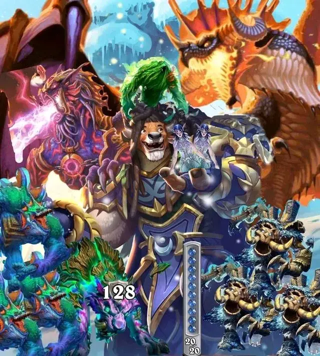 碰到一个德鲁伊真离谱,带女王,团本,9费吞噬,大帝,火焰使者,属性翻倍。还有铜须法术复制。也就打打我了