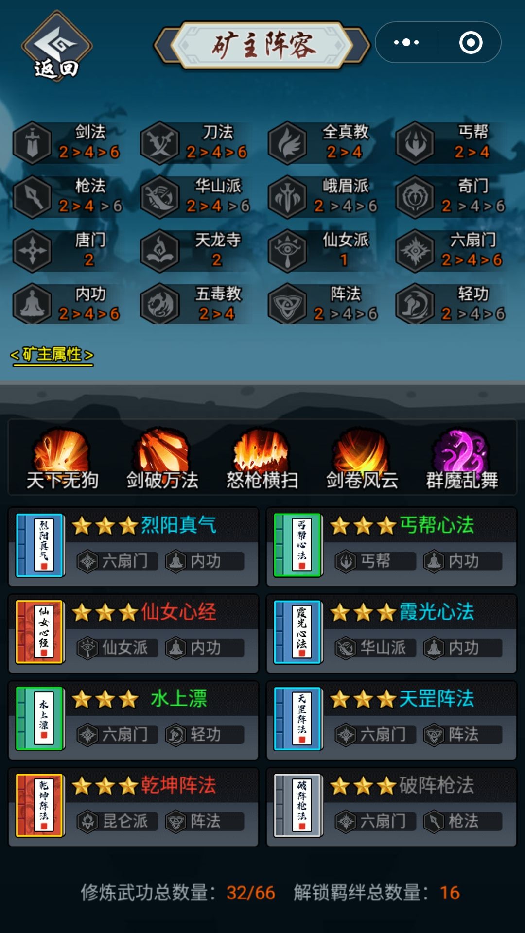 图内内功2,六扇阵2,乾坤3。