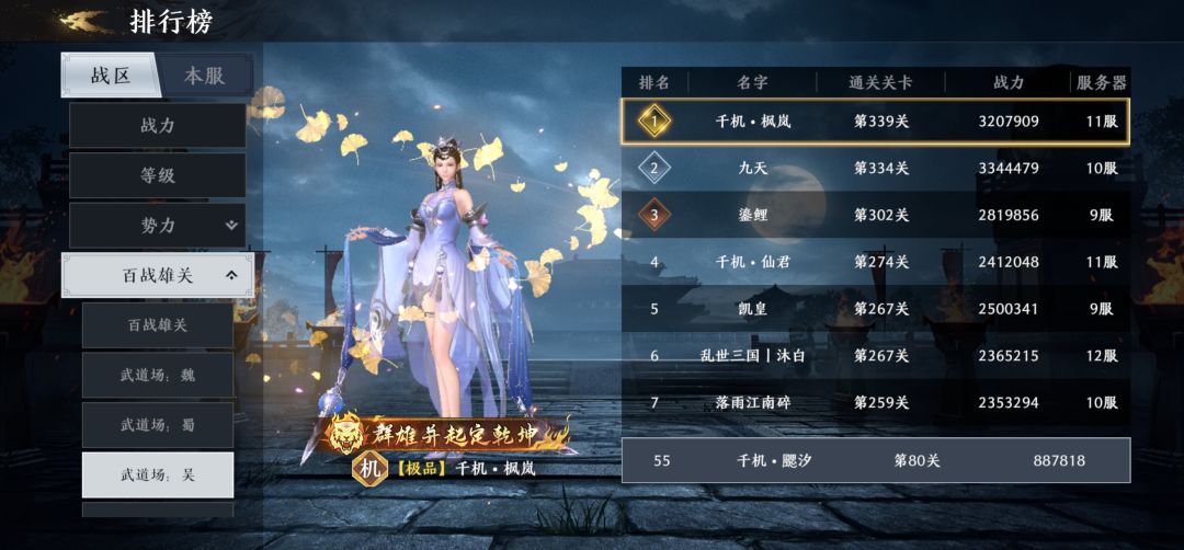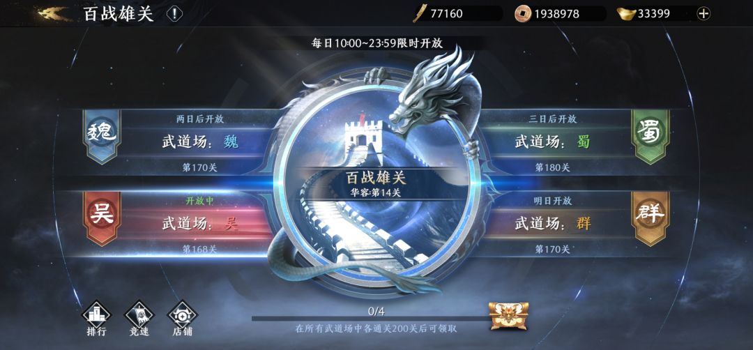 国服开服56天,白嫖第56天,百战雄关武道场四国全通80,操作好50天左右能通完四国80。