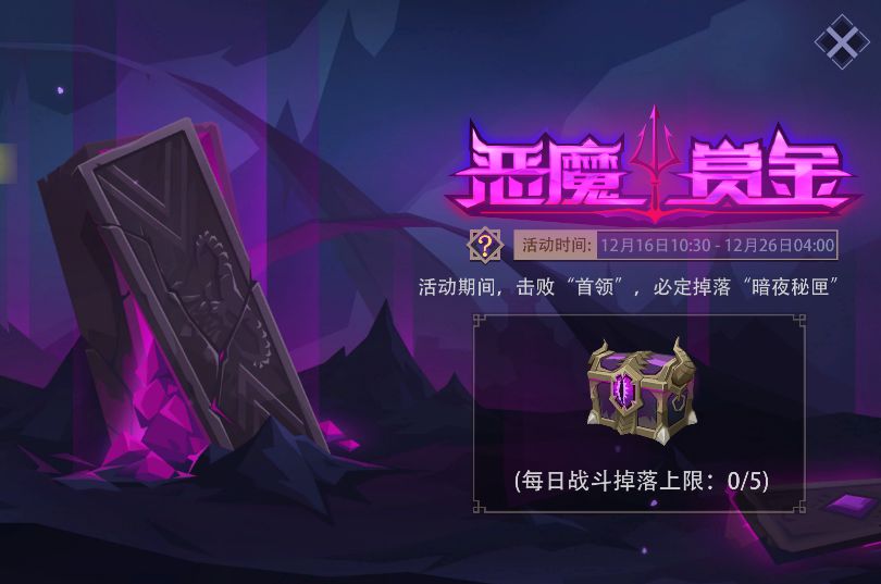 活动内容:活动期间,在[冒险模式]或[梦魇模式]下击败每一层的‘首领’,均可掉落‘暗夜秘匣’;每日上限为5个。‘暗夜秘匣’打开后能获得随机数量的魔晶。